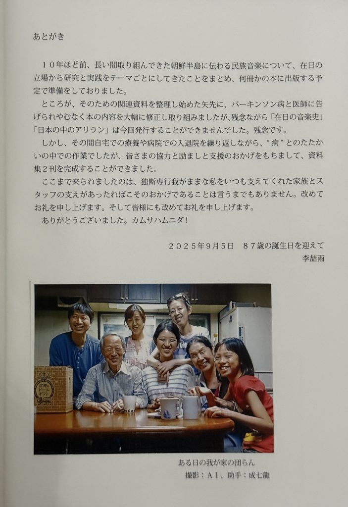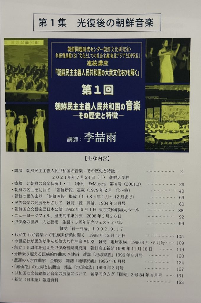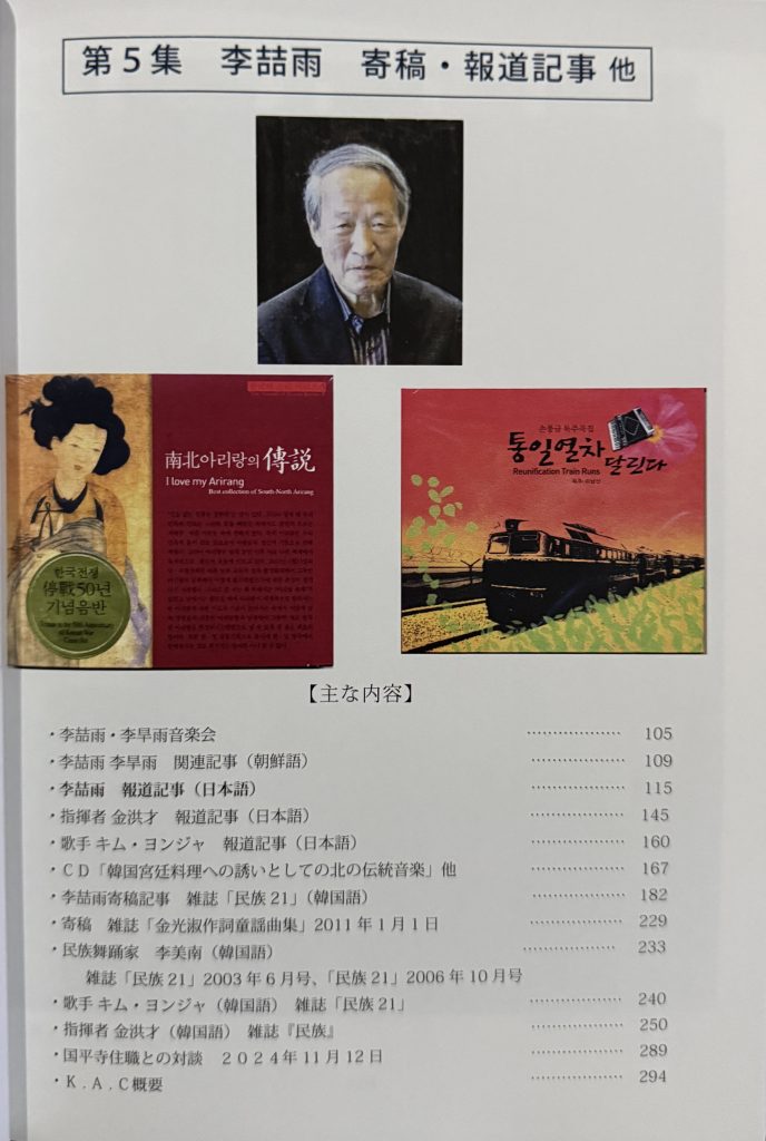 在日民族音楽資料集 上、下(編集・発行:李喆雨、上田豊) 2025 12/30 ニュース 出版 在日民族音楽資料集 上、下 編集・発行:李喆雨、上田豊 協力:李信明、金理花 K.A.C出版/調布市多摩川2-12-2 発行:2025年9月(限定100部出版) ニュース 出版 희망찬 새해 2026년을 맞으며 축하장들이 나왔다 총련소식《애국위업의 영원한 생명선》《동포사회에 랑만을 더해주며》 関連記事 제3차 2.16경축 인민예술축전 각지에서 성황리에 진행 2026-02-15 제3차 2.16경축 인민예술축전이 개막 2026-02-14 만경대학생소년궁전 예술소조원들의 종합공연 《2월의 하늘가에 울려가는 행복의 노래》가 13일에 진행 2026-02-14 제3차 2.16경축 인민예술축전이 진행된다 2026-02-13 총련소식《전체대회준비사업 추진》《자랑스러운 모범분회들》《권리옹호투쟁을 끝까지》 2026-02-12 지방예술단체들은 오늘의 현실을 반영한 작품창작활동을 적극 전개하자 2026-02-11 조선인민군창건 78돐경축 국방성협주단 음악무용종합공연이 8일 봉화예술극장에서 진행 2026-02-09 第5回「ヤヒャンと素敵な仲間たち」の演奏会開催(2026.2.8) 2026-02-08