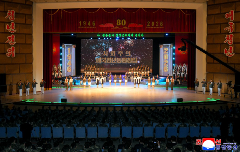 사회주의애국청년동맹창립 80돐기념 청년중앙예술선전대와 청년학생들의 종합공연 진행