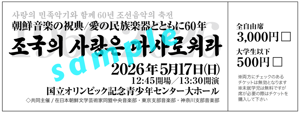 〈チケットは、2月16日から販売!〉愛の民族楽器とともに60年(1966-2026)朝鮮音楽の祝典『祖国の愛はあたたかく』(2026.5.17)
