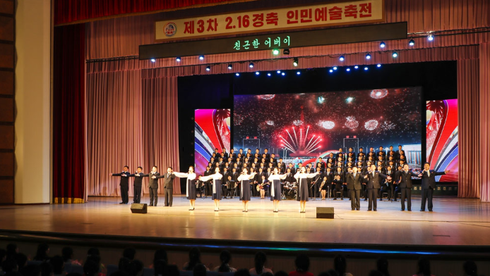 위대한 령도자 김정일동지 탄생 84돐을 경축하여 제3차 2.16경축 인민예술축전 참가자들의 공연이 16일 각지에서 성황리에 진행되였다.