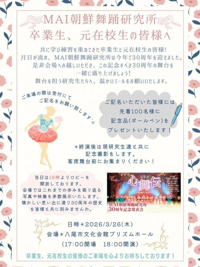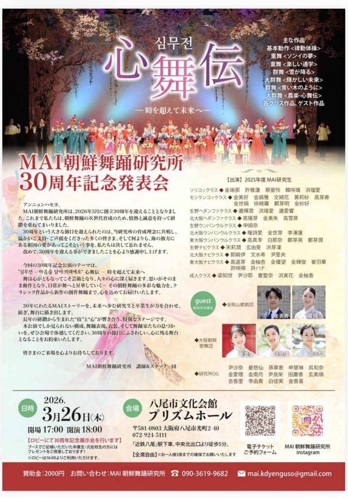 MAI朝鮮舞踊研究所 30周年記念発表会(2026.3.26)