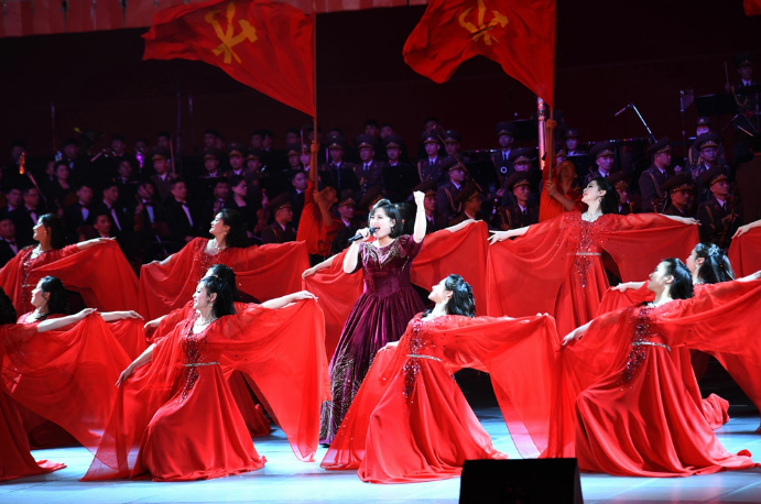 출연자들은 애국의 기치아래 일심일체로 굳게 뭉친 조선혁명특유의 전진기상과 모든 승리와 영광의 조직자이며 향도자인 위대한 우리 당에 대한 온 나라 인민의 다함없는 신뢰심을 《조선로동당 만세》, 《백전백승 조선로동당》을 비롯한 찬가들에 담아 격조높이 구가하였다.