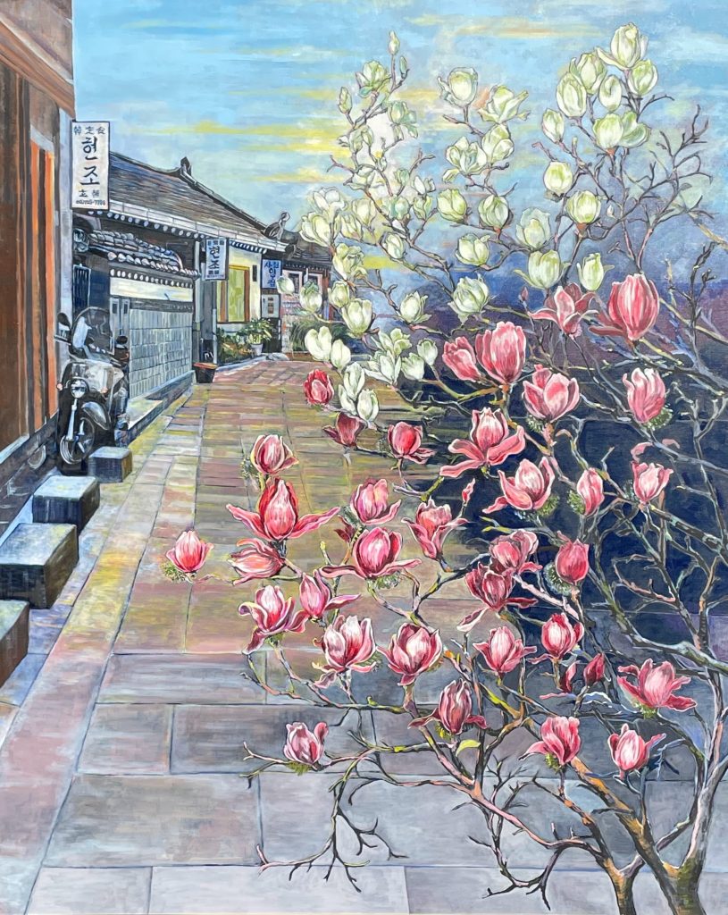 2025년 9월에는 크기 F100호의 《아침의 인사동과 목련》을 발표하였다.